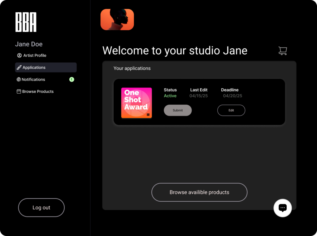 Design an artist dashboard to streamline application management, profile updates, and direct communication, reducing administrative tasks for the gallery while enhancing artist engagement and retention through intuitive, self-service tools.