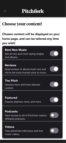 The content is why users love Pitchfork! Every user i spoke with verified that the look to pitchfork for reviews and ratings on new music.