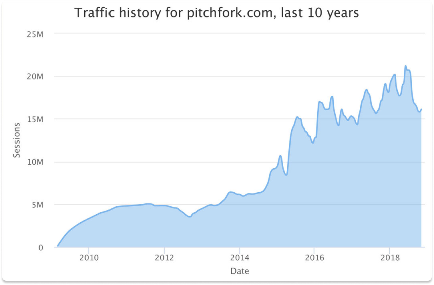 “Since launching this redesign in March 2016, traffic to pitchfork.com has tripled, and continues to steadily grow.”